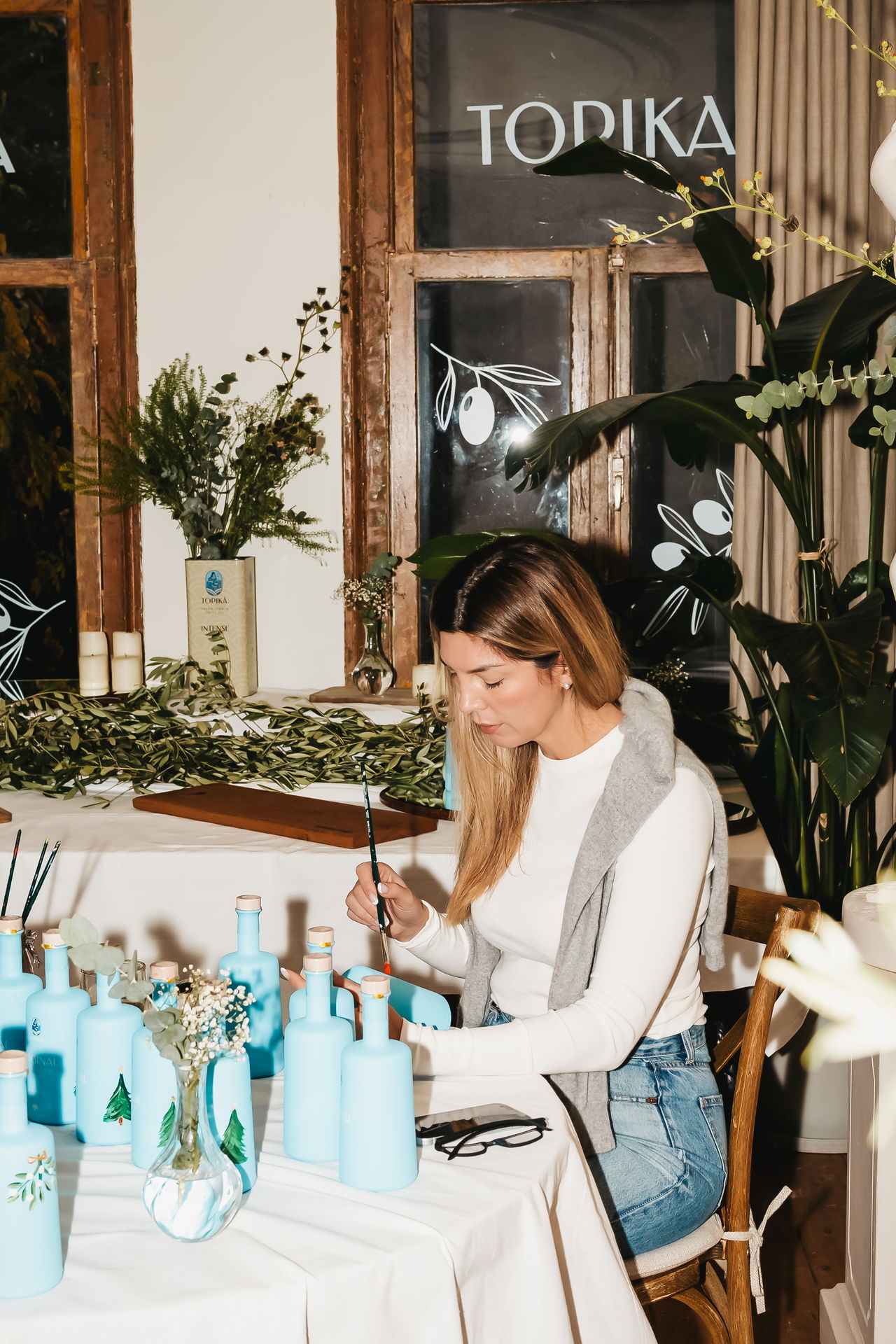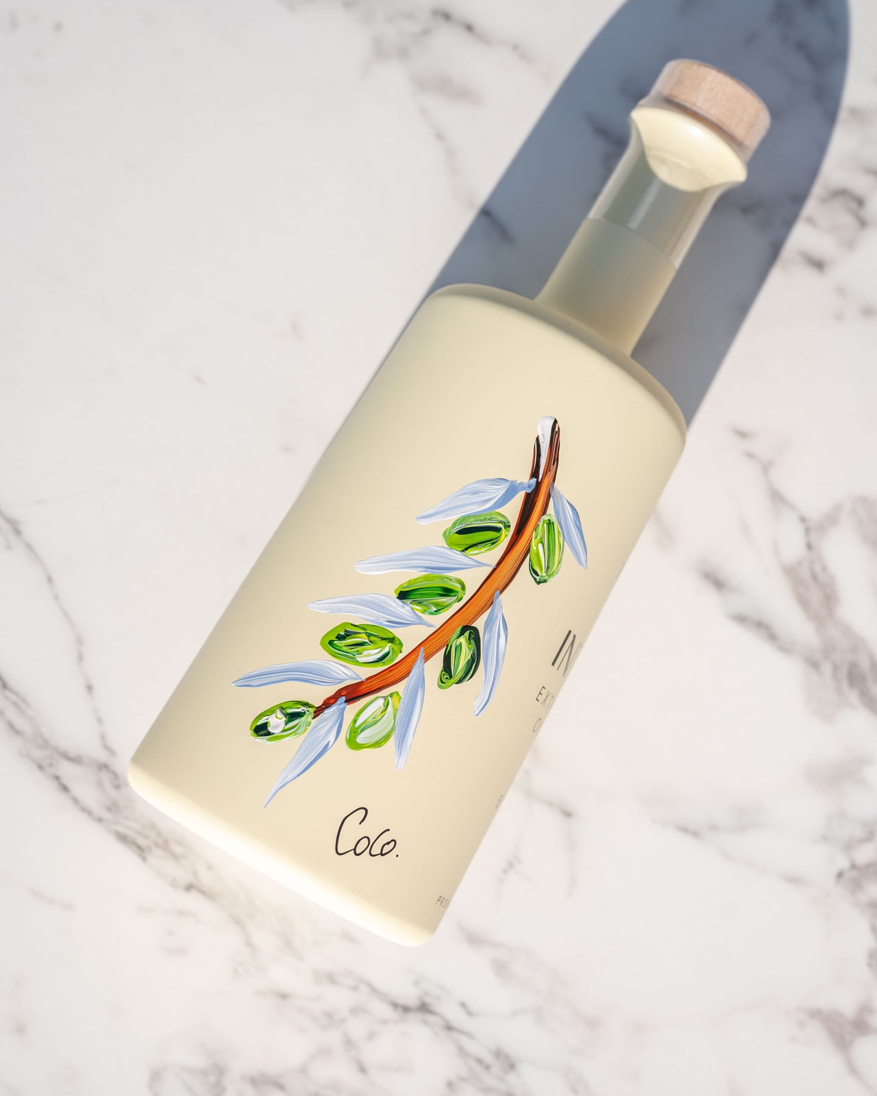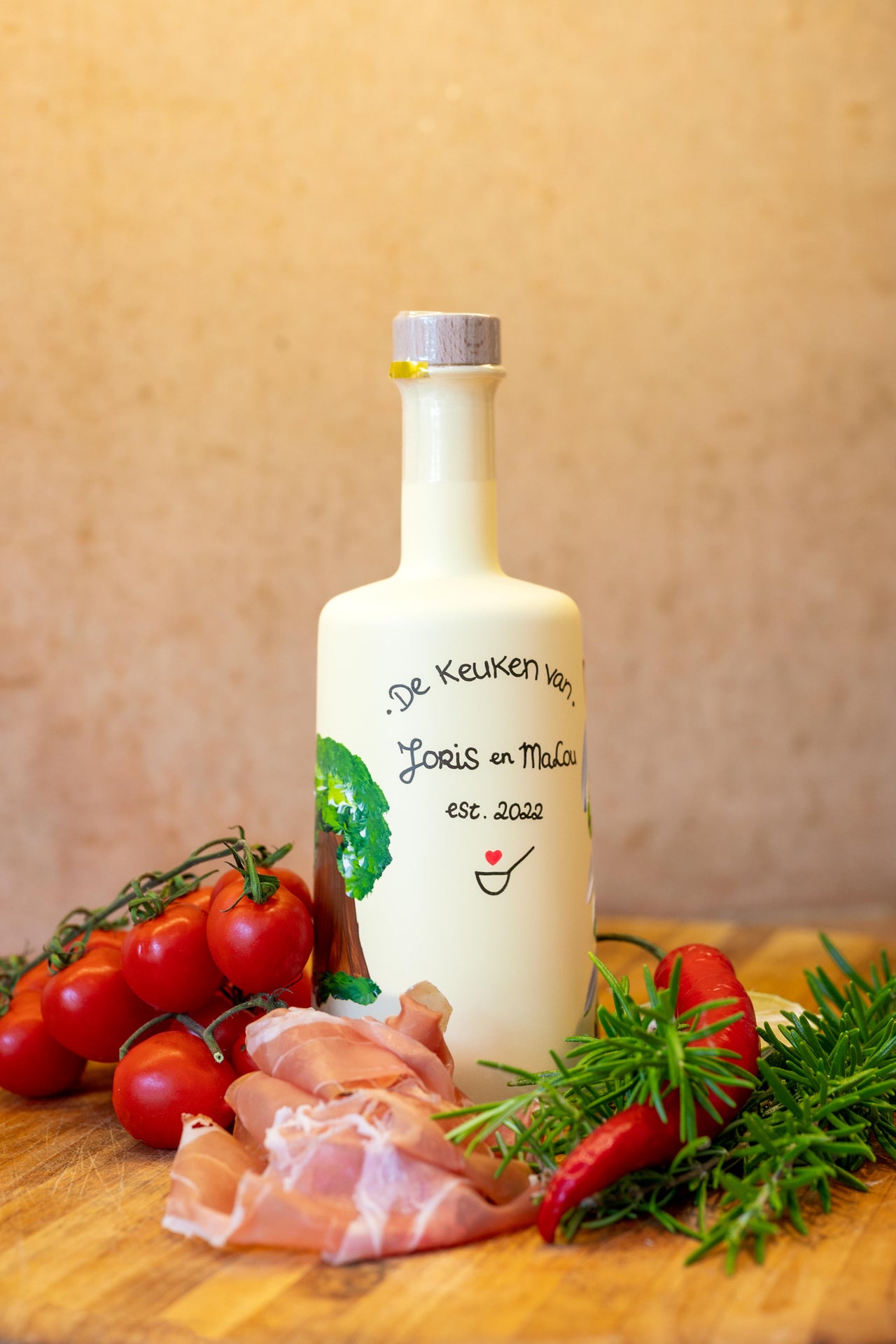 Exclusively for TOPIKÁ, she hand-paints each olive oil bottle. Each bottle is unique and can be personalized with a name or message free of charge. A special gift and a stylish addition to any kitchen.