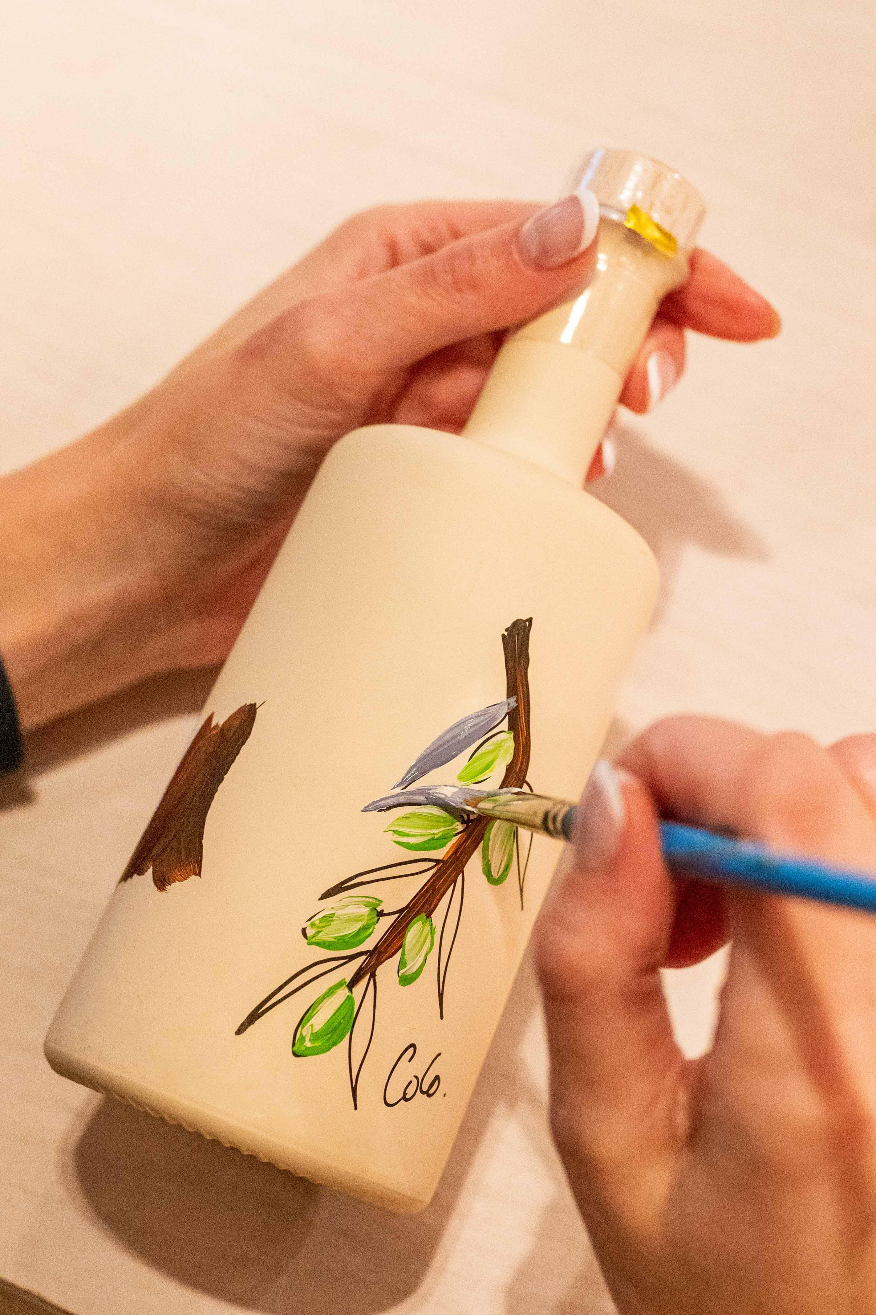 Contemporary artist Corinne Pruis staat bekend om haar frisse portretten en vazenkunst. Haar werk is te zien op gerenommeerde art fairs en bij toonaangevende designhuizen. Exclusief voor TOPIKÁ beschildert zij elke custom olijfoliefles met de hand, stuk voor stuk. Elke fles kan gratis worden gepersonaliseerd met een naam of boodschap. Een bijzonder cadeau of een stijlvolle toevoeging voor in jouw keuken.